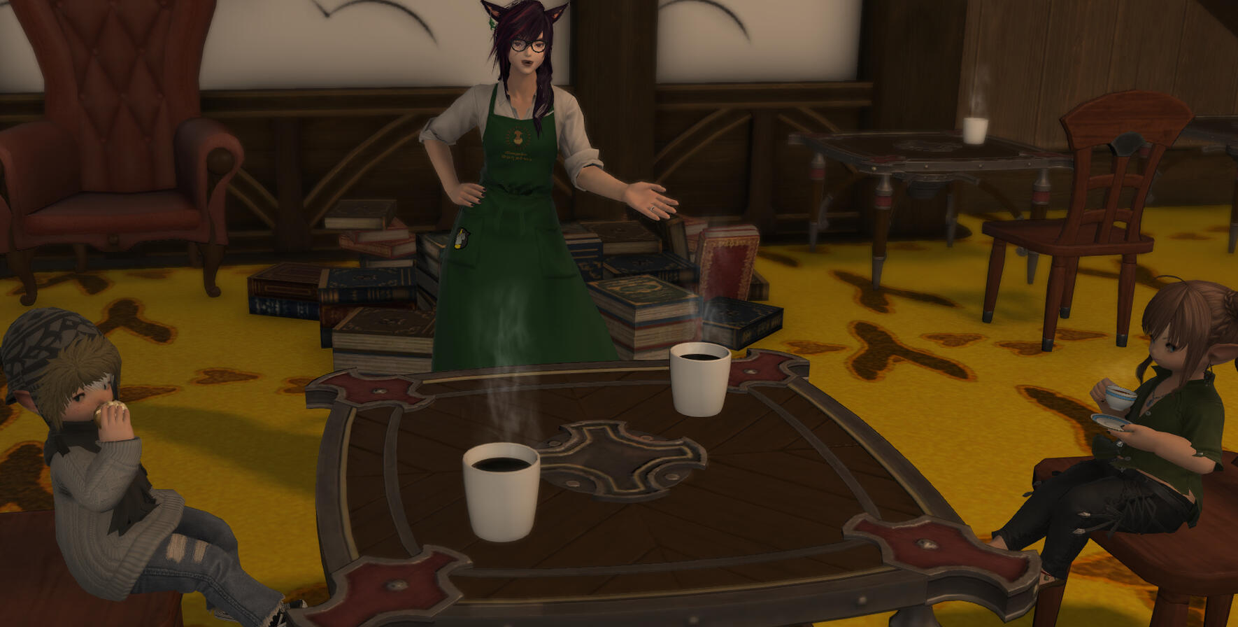 Catgirl Starbucks is Malboro's own Miqo'te-run café! We have nice warm drinks and meals, plus a cozy environment that will get your weekends off to a great start! Feel free to bring along your minions as well!